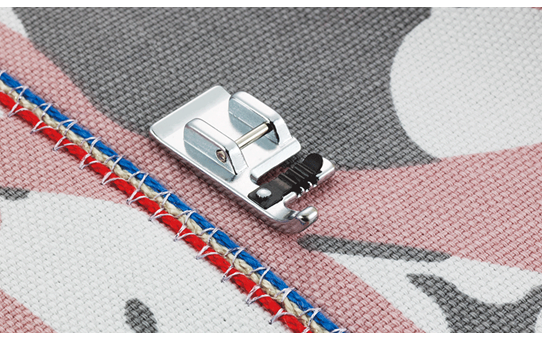 Questo piedino consente di cucire fino a tre cordoncini o fili decorativi. Basta inserire i cordoncini sotto la clip e cucire con un punto zig-zag o decorativo.